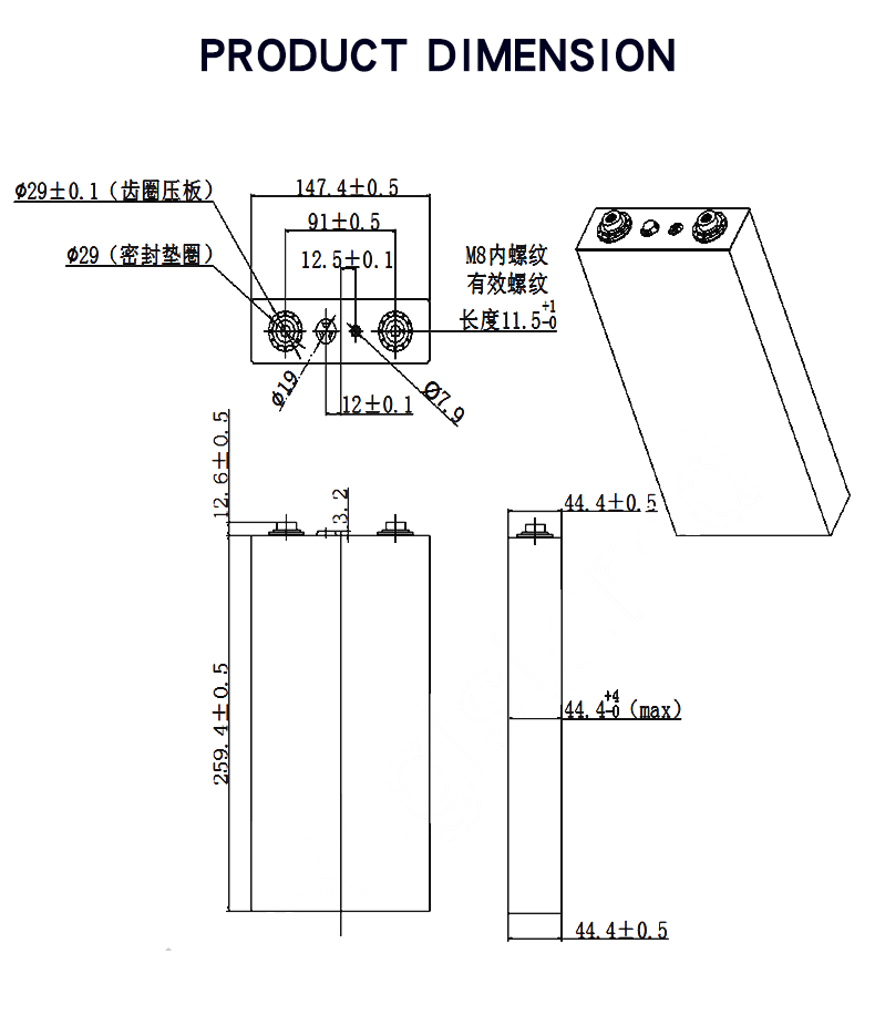 মাত্রা (Pls। অঙ্কন দেখুন) | 44.4*147.4*272 মিমি |