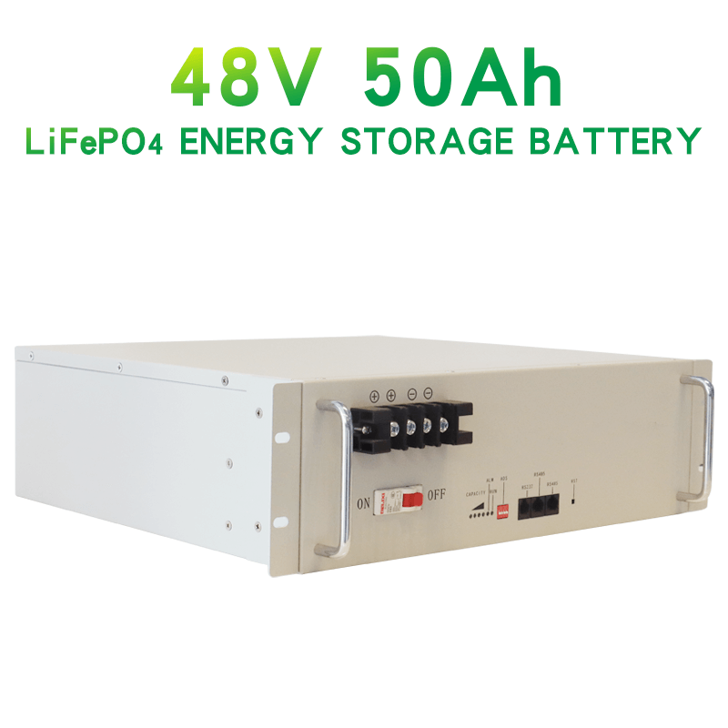 এই 48V 50Ah LFP ব্যাটারি সিস্টেমে বিল্ট-ইন BMS এবং স্টেইনলেস স্টিলের বাক্স কালো বা সাদা রঙে আঁকা আছে।