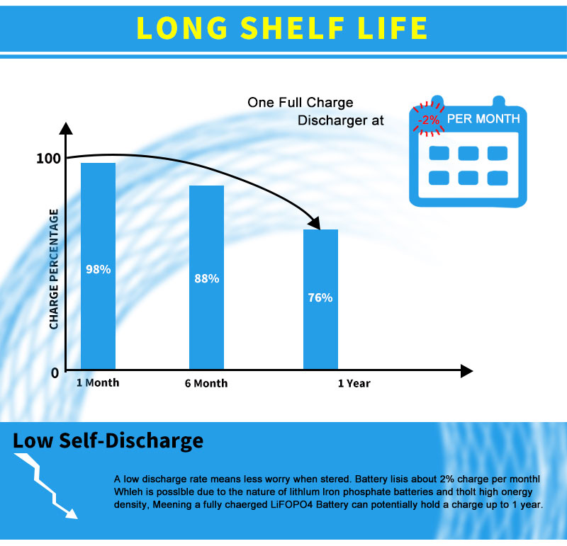 আমরা আমাদের সমস্ত ব্যাটারি প্যাকের জন্য 2 বছরের ওয়ারেন্টি অফার করি Li আমরা LiFePO4 ব্যাটারি প্যাকের জন্য কমপক্ষে 2000 চক্রের জীবন নিশ্চিত করি, যার অর্থ, 2000 @ 80% ডিওডির পরে, এখনও প্রায় 60% ধারণক্ষমতা বাকি থাকবে left আপনি এটি কমপক্ষে ব্যবহার করতে পারবেন প্রতিদিন 1 বার চার্জ এবং স্রাবের জন্য 5 বছর।