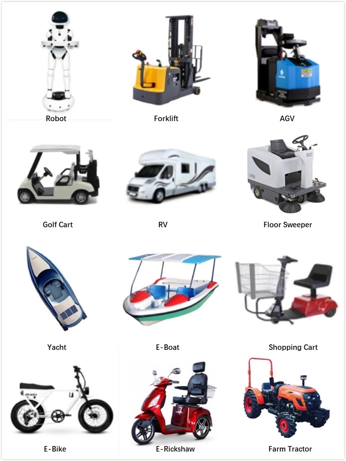 | অ্যাপ্লিকেশন | গলফ কার্ট, বৈদ্যুতিক ফর্কলিফ্ট, ধীর গতির গাড়ি; এজিভি, বৈদ্যুতিক মোটরসাইকেল; দর্শনীয় স্থানের গাড়ি; আরভি, ট্রাইসাইকেল, বৈদ্যুতিক যানবাহন, বৈদ্যুতিক হুইলচেয়ার, বৈদ্যুতিক বিদ্যুৎ ব্যবস্থা, নিরবচ্ছিন্ন বিদ্যুৎ সরবরাহ, সৌরশক্তি সঞ্চয় ব্যবস্থা, নৌকা |