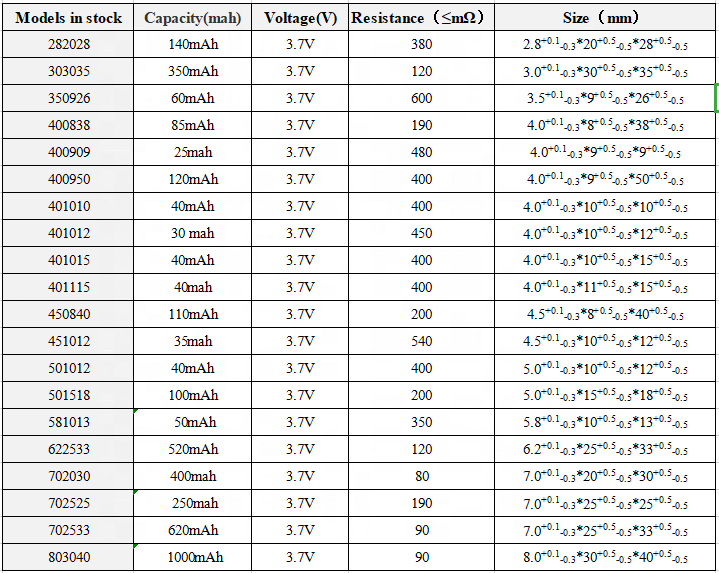 পণ্যের নাম | 581013 3.7V 50 এমএএইচ পলিমার লিথিয়াম ব্যাটারি | মন্তব্য | |