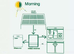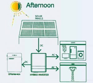 ![]() | সূর্য ডুবে গেলে ব্যাটারি এসি লোডকে শক্তি দেবে। |