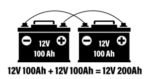 নীচের উদাহরণে, আমাদের দুটি 12 ভি ব্যাটারি রয়েছে, তবে আপনি দেখেন অ্যাম্প-ঘন্টাগুলি 200 আহে বেড়েছে।